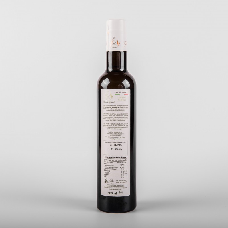 Olio Extravergine "Fruttato medio" dalle caratteristiche organolettiche ben equilibrate.